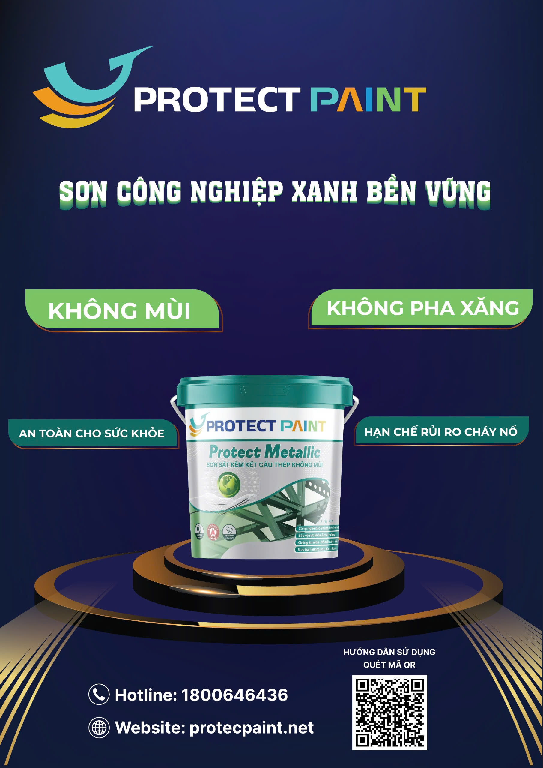 Sơn Sắt Kẽm Kết Cấu Thép Không Mùi PROTEC METALLIC là loại sơn kẽm gốc nước không mùi, an toàn cho sức khỏe, đặc biệt có độ bám dính cực cao, nhanh khô, chịu mài mòn tốt, chịu nhiệt, khả năng chống hóa chất vượt trội cùng độ bền cao. Sơn Sắt Kẽm Kết Cấu Thép Không Mùi được dùng như lớp sơn phủ trên sắt thép sử dụng trong công trình dân dụng và công nghiệp.